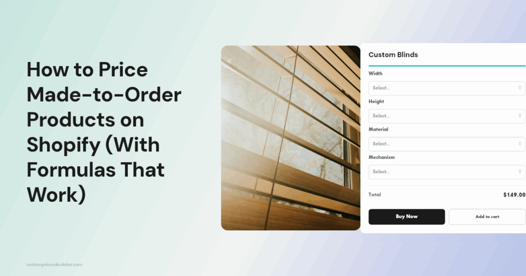 Pricing made-to-order products on Shopify means your price has to change based on what the customer specifies — size, material, quantity, or some combinati